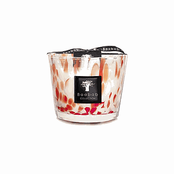 Covered in delicate touches of coral on hand-blown glass, the Coral Pearls scented candle is an object of decoration that will shimmer in your interiors as it releases an enchanting perfume. This candle, with its reference to the color of precious corals, will fit perfectly into your vacation homes.